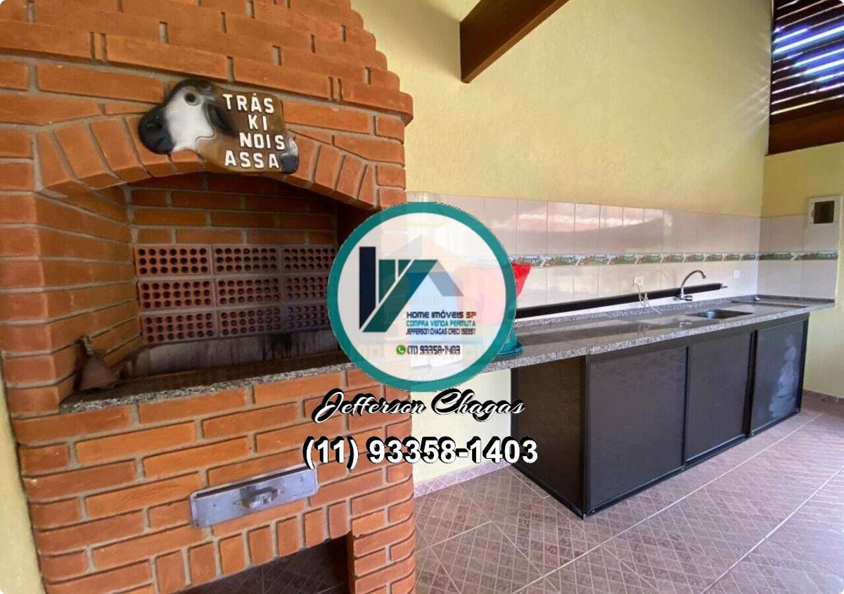 Piso inferior: 2 suítes, área de serviço, quarto de depósito, cozinha, despensa, amplo salão (ou vagas de garagem). Pomar, espaço com churrasqueira e banho. Caso do caseiro.